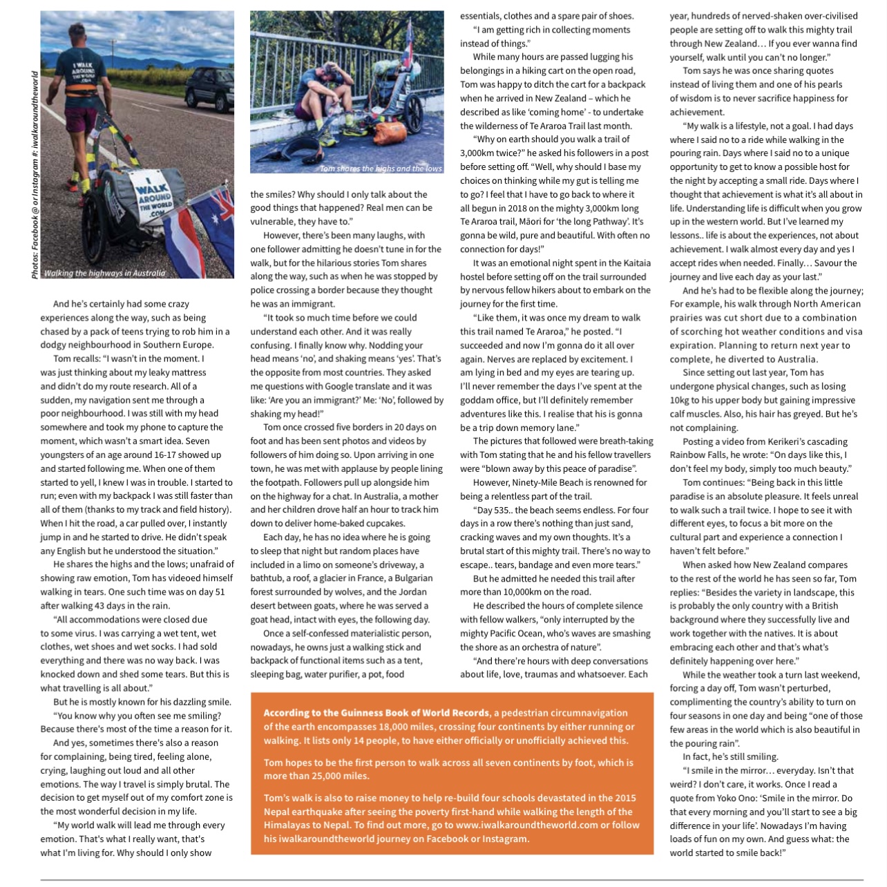 Tom Boerman found a novel way to reset his life after drug rehabilitation. He decided to walk on all continents while enduring several weeks of scorching heat in North America, copping fines for walking on the road in Europe and crossing the Turkish border with drug smugglers – all for a cause. Or two.